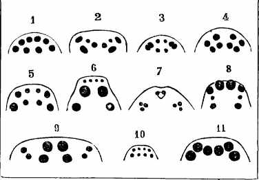 Fig. 1. Disposition des yeux chez les diverses espèces