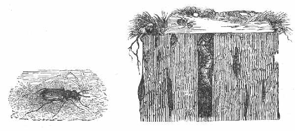 Fig. 143. - Cicindèle champêtre. Larve en embuscade; adulte.