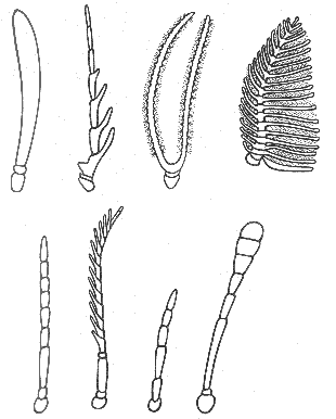 Antennes avec le troisième article plus large et presque aussi long, voire plus long, que tous les articles suivants |