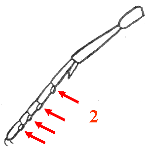 Extrémité des articles 1 à 4 des tarses dépourvus de lobe digitiforme