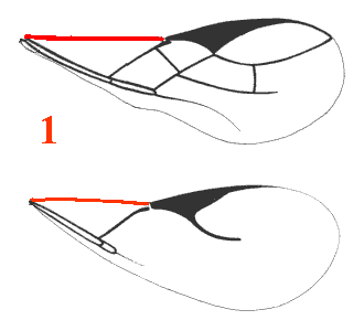 Aile antérieure sans cellule costale (les nervures R et C sont fusionnées)