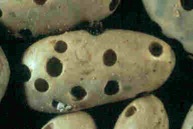 Dégâts de Bruche sur haricots (Cliché : R. COUTIN - OPIE).
