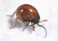 Adulte : 2,5 à 3 mm, brun rouge, très brillant ; de forme