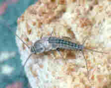 Lépisme adulte sur morceau de pain (Cliché R. COUTIN - OPIE).