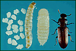 farine : oeufs, larve, nymphe, adulte (Cliché