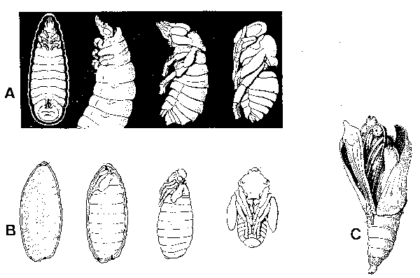 Étapes de la formation de la nymphe A. Apis mellifera (L.) B. Rhagoletis pomonella (Walsh)