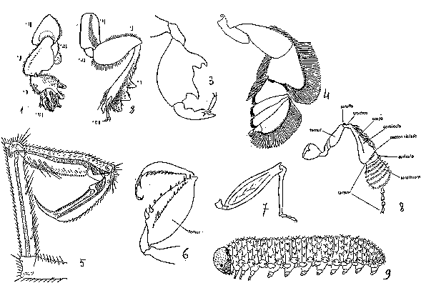 (larve de Magicicada ; Pattes natatoires : 4. (Gyrinus) ; Pattes
