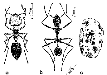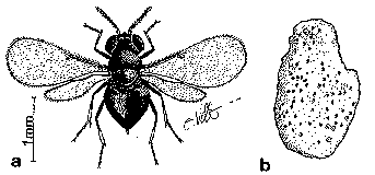 a: Acrocoelia scutellaris; b: Aphaenogaster senilis.