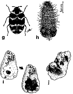 id., plus âgé; f: larve; g: A. minutus; h: larve; i et