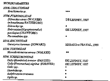 Mis à part B. intermedia, seul présenté ici, tous ces parasitoïdes sont peu fréquents et toujours très peu abondants dans les populations de chrysalides du Bombyx disparate quelque soit le niveau de leur gradation (HERARD et FRAVAL, loc. cit.; CHAKIR et FRAVAL, 1985; KASSIM, loc. cit., VILLEMANT, 1989).