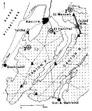 1: Oulad-Mlik. Lieux des essais de traitement de 1975 et 1976 (FRAVAL et