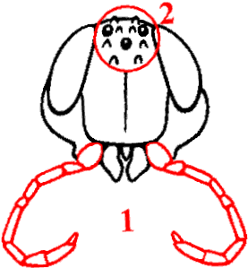 Antennes insérées plus loin de la bouche, au niveau de la base des yeux