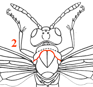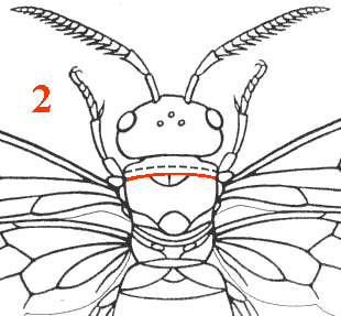 Pronotum en vue dorsale avec un bord postérieur fortement concave