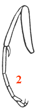 Extrémité des articles 1 à 4 des tarses dépourvus de lobe digitiforme