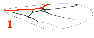 Aile antérieure avec une cellule costale ouverte vers l'avant (nervure C absente)