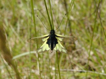 Un mâle d'Ascalaphe (Ascalaphus libelluloides) le 12 mai 2001 dans une prairie à Campans, Tarn (81).