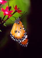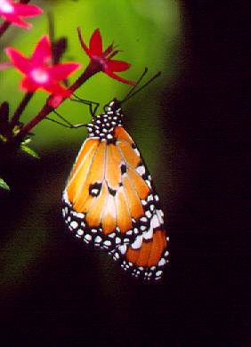 Danaus chrysippus petilia au repos sur une fleur de Pentas (Nouvelle-Calédonie).
