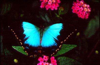 Papilio montrouzieri posé sur des fleurs de Lantana fraîchement épanouies (Nouvelle-Calédonie).