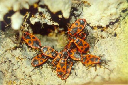 Colonie de Gendarmes : Pyrrhocoris apterus (Hétéroptère Pyrrhocoridé)
