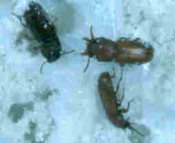 Adulte : 3,5 à 4,5 mm, brun-roux, mat. Tête plus large en avant