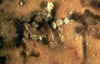 Larves de Tribolium rouge en plein repas (cliché R.