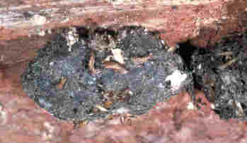 Chenilles de Teigne sur pelotes de réjection (Cliché R. COUTIN - OPIE).