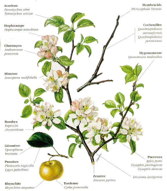 Parmi les arbres fruitiers, le Pommier héberge une faune d'invertébrés particulièrement diversifiée : plus de 80 espèces d'insectes et d'acariens. Une richesse due à son ancienneté : l'espèce est autochtone de nos régions et sa domestication est intervenue très tôt au point que les noms d'une bonne vingtaine de localités du nord au sud en témoignent. Dans toutes les régions du monde à climat tempéré, il a été colonisé par les arthropodes locaux qui par la suite furent introduits accidentellement en Europe tandis que certains ravageurs européens l'ont suivi dans son extension mondiale.