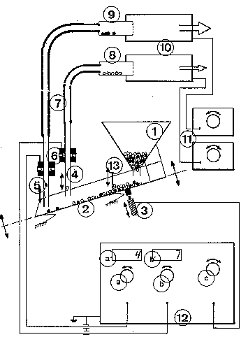 le réglage de la fréquence du vibreur (c); 13: vanne de