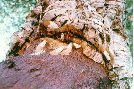 l'écorce de l'arbre. Ici à l'endroit de la hausse (la limite