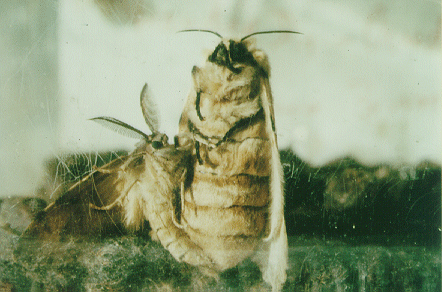 Le mâle - petit, muni d'antennes plumeuses - (à droite)