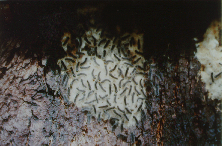 printemps suivant, les chenilles éclosent puis grimpent le long du